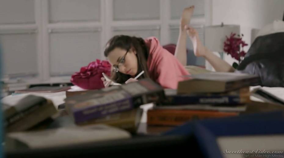 Nerdy brunette in glasses Casey Calvert is fucked by sex-hungry tattooed blond girlfriend