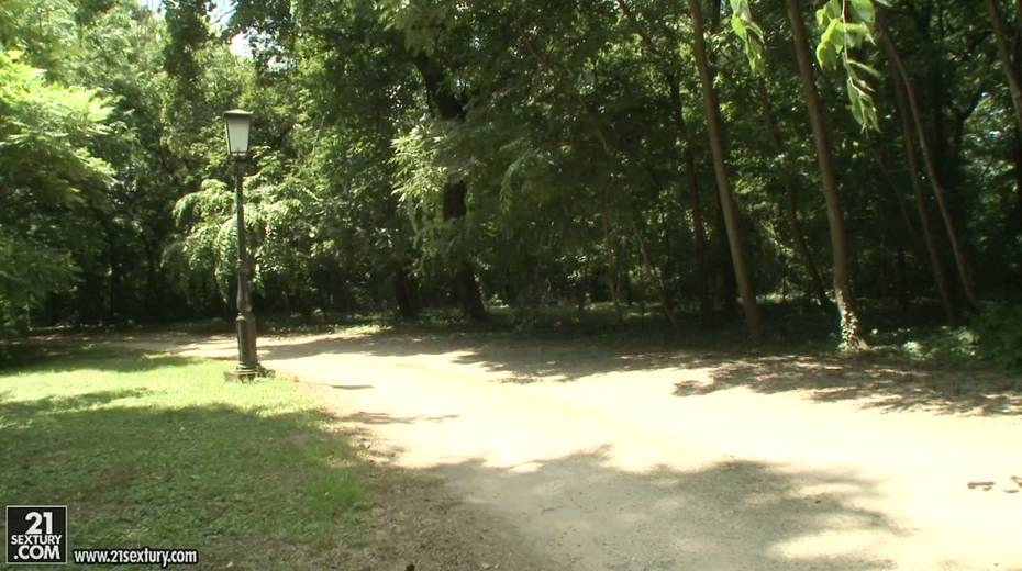 Blue eyed Hungarian blonde Candee Licious gets laid right in the park