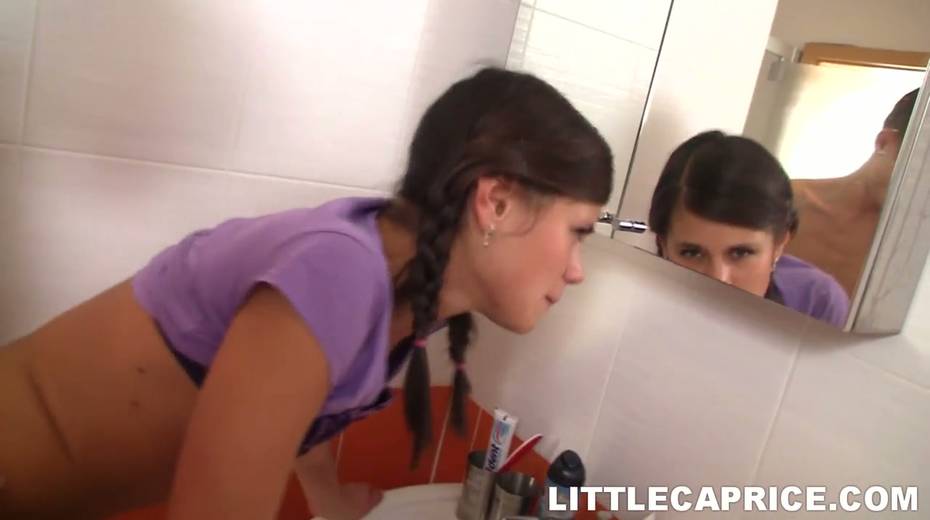 Sweetie Little Caprice is making love with her boyfriend in the bathroom