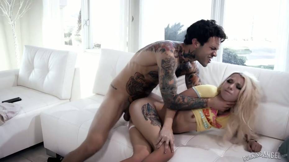 Tattooed stud fucks pretty hot slim blondie Kenzie Reeves