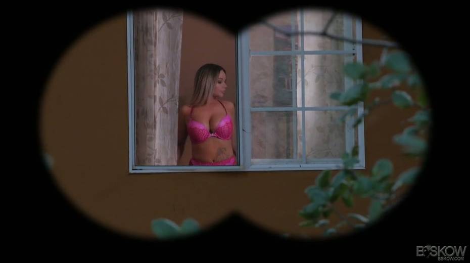 Kinky neighbor is spying on sexy babe in the window Rachele Richey