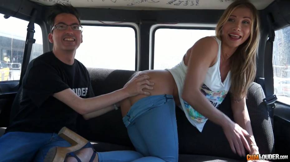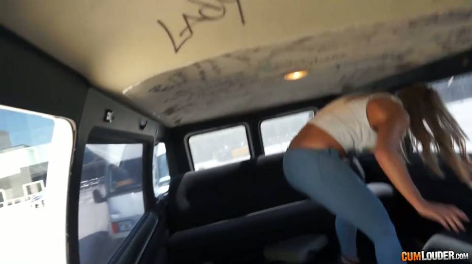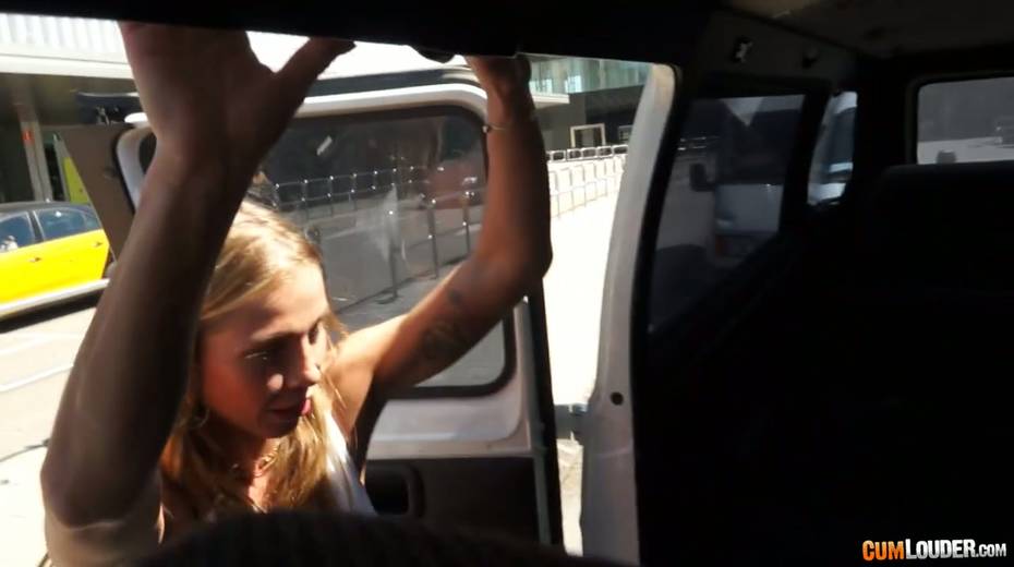 Slutty chick Rita Rush gets her pussy fucked in the back seat