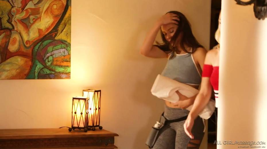 Beautiful masseuse Lana Rhoades enjoys eating pussy of one sexy client in the massage parlor