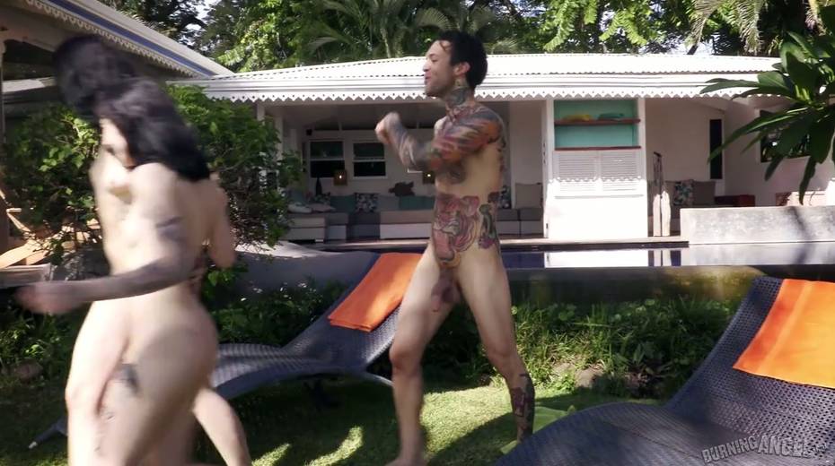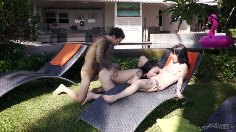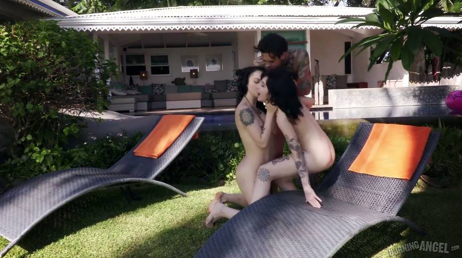Tattooed British bitch Alessa Savage and her sexy girlfriend are fucked by one brutal dude