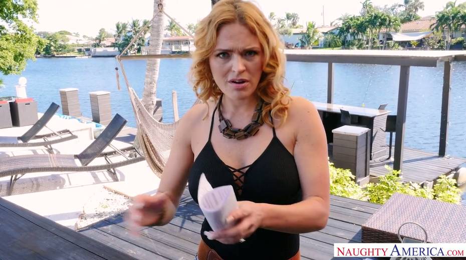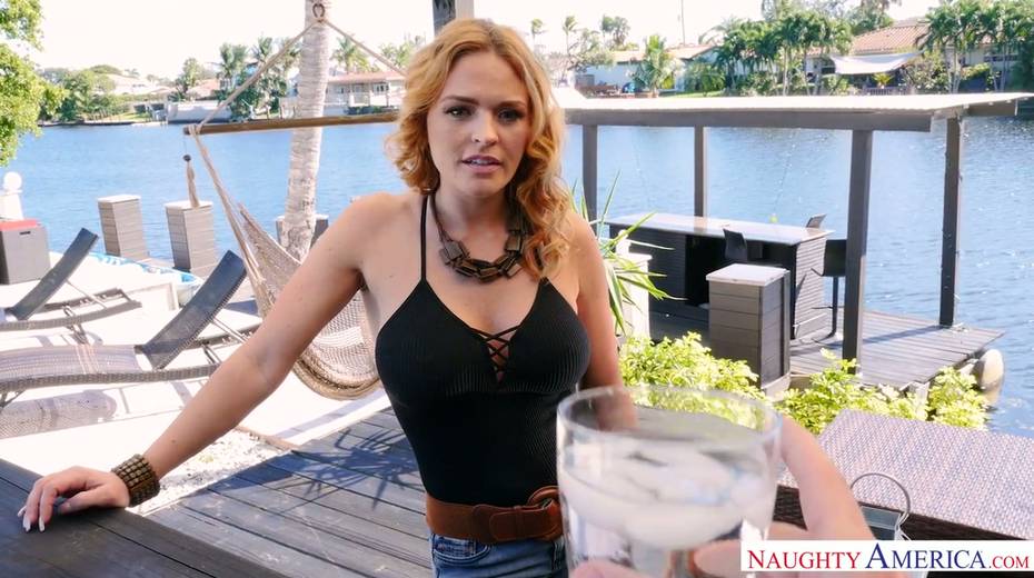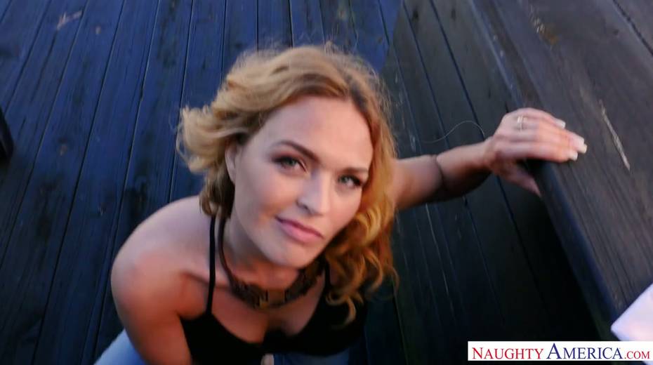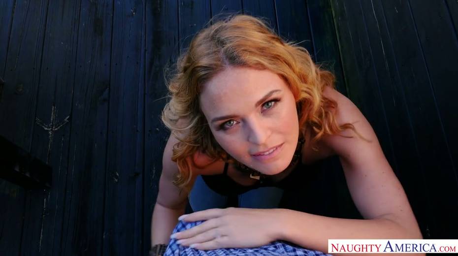 Captivating red head Krissy Lynn gives a blowjob and gets banged