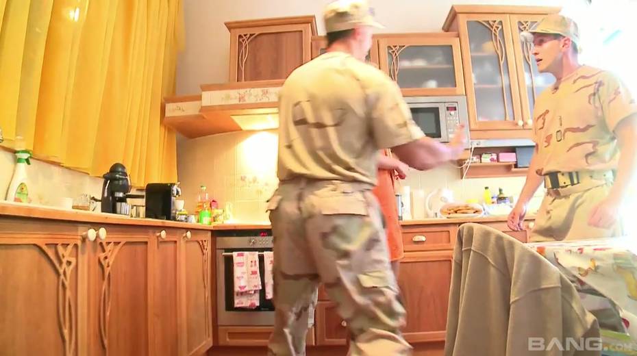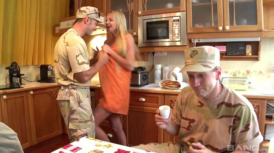 Ukrainian babe Ivana Sugar is banged by two hot blooded soldiers