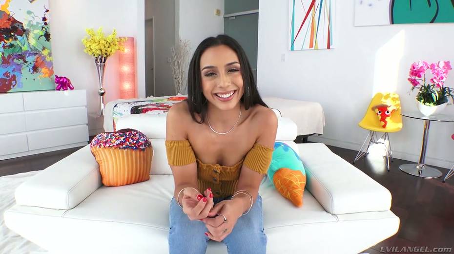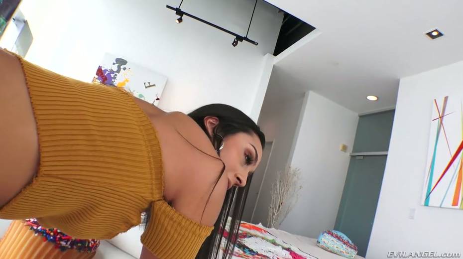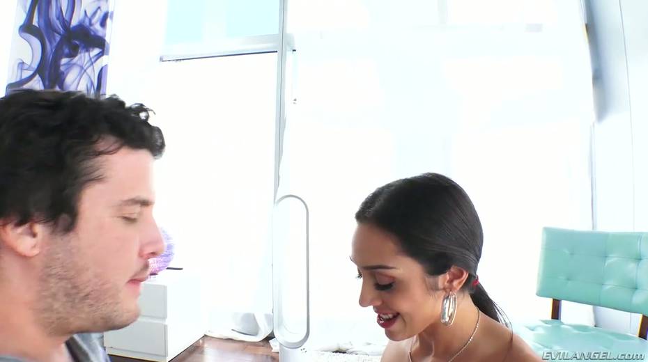 Oiled up anal hole of Lilly Hall is fucked doggy style by one well endowed dude