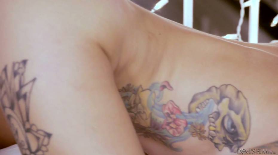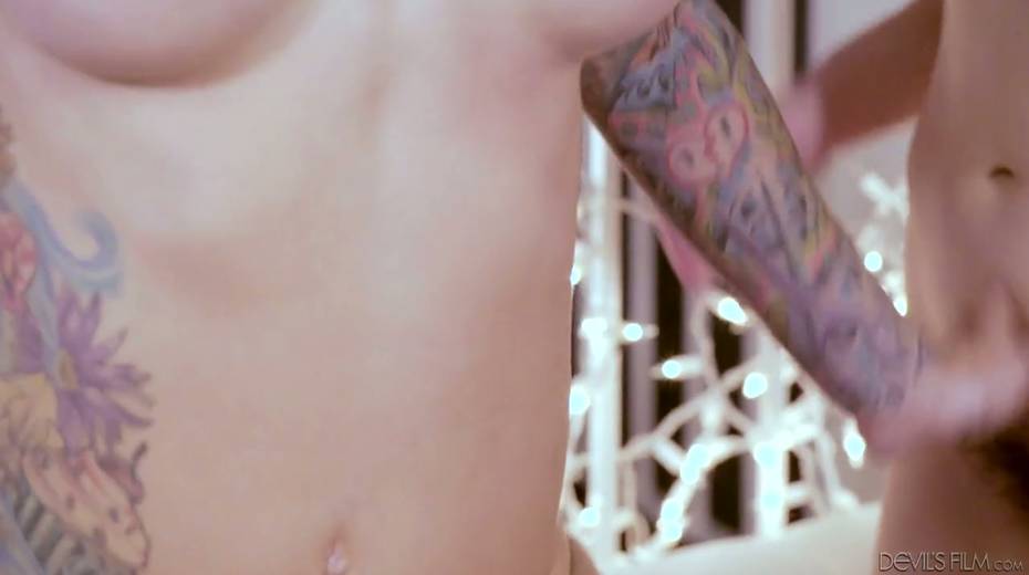 Swanky brunette Audrey Noir and one tattooed blonde are fucked by hot blooded dude