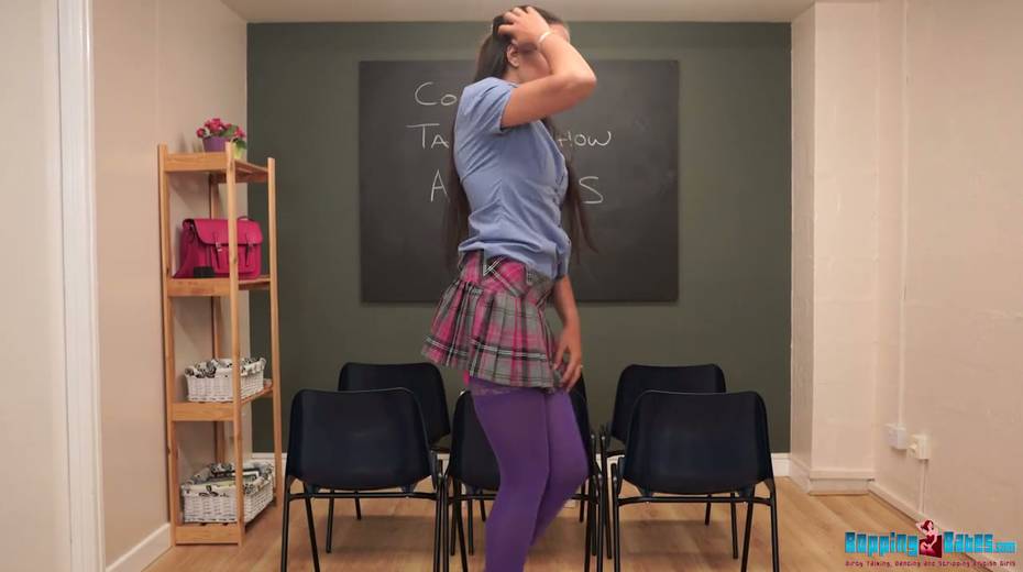 Pretty hot teen in kilt skirt Rebecca G enjoys dancing and stripping