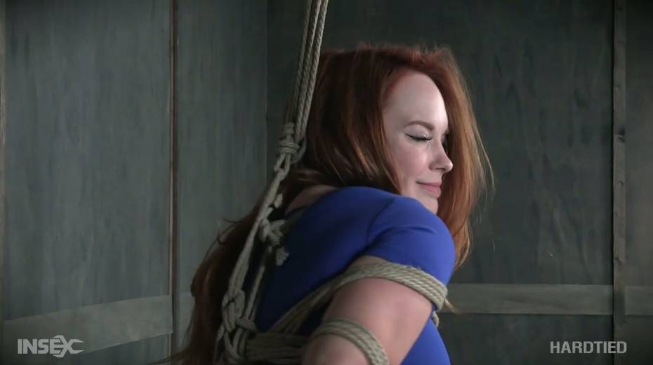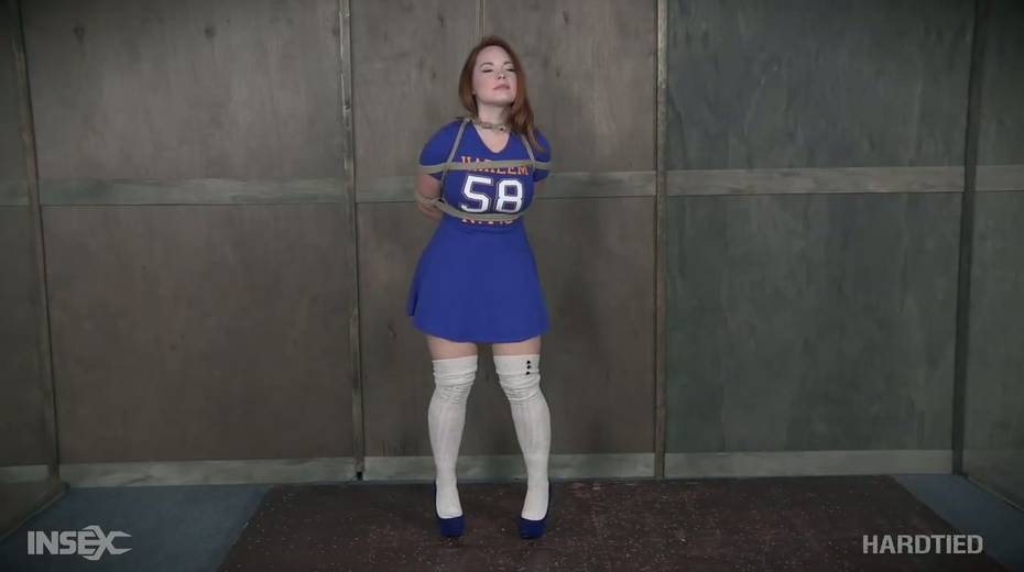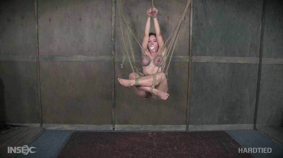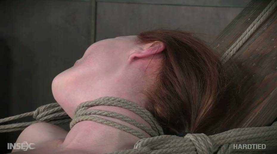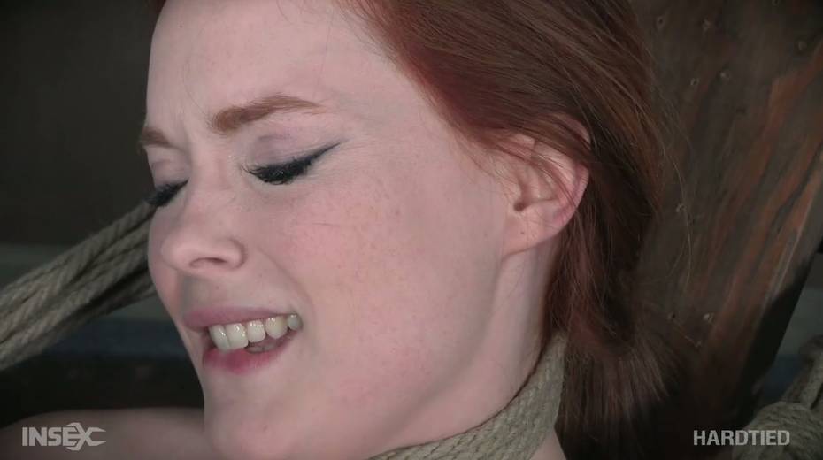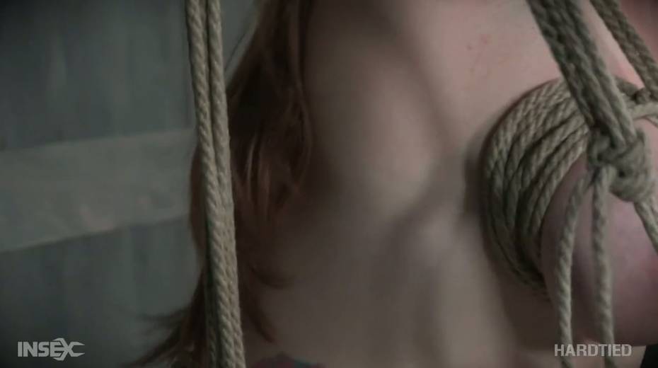 Bearded pervert punishes tied up red head Summer Hart with the help of vibrator and metal hook