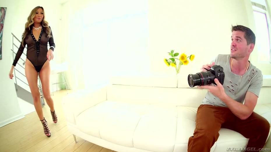Asian seductress Lana Croft can't stop sucking a huge white penis
