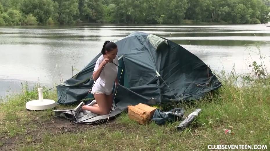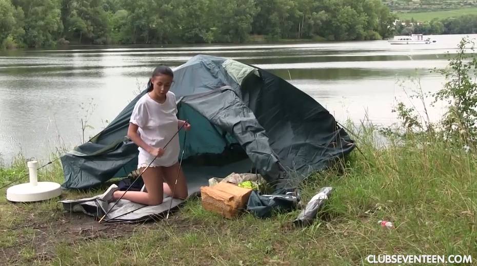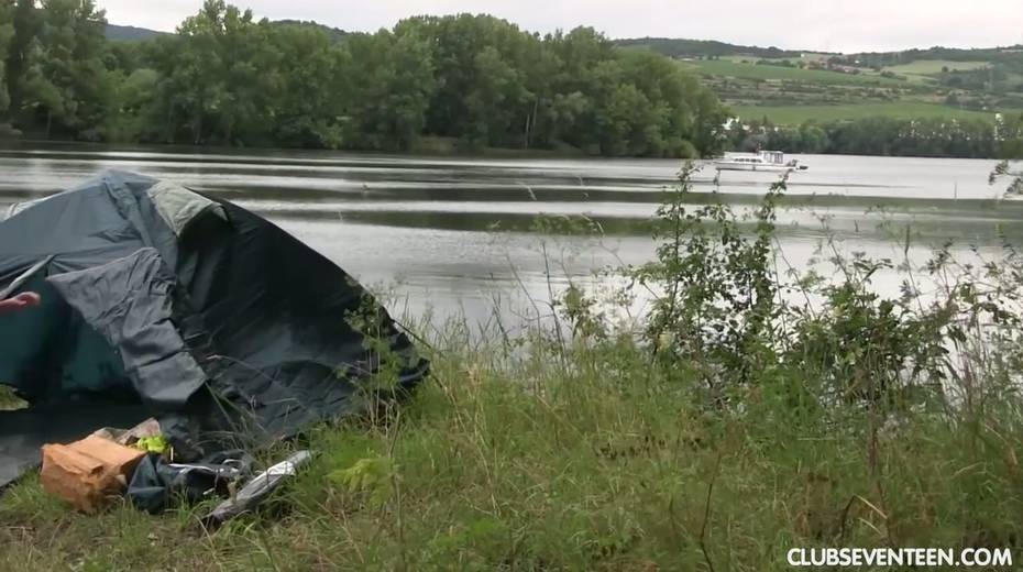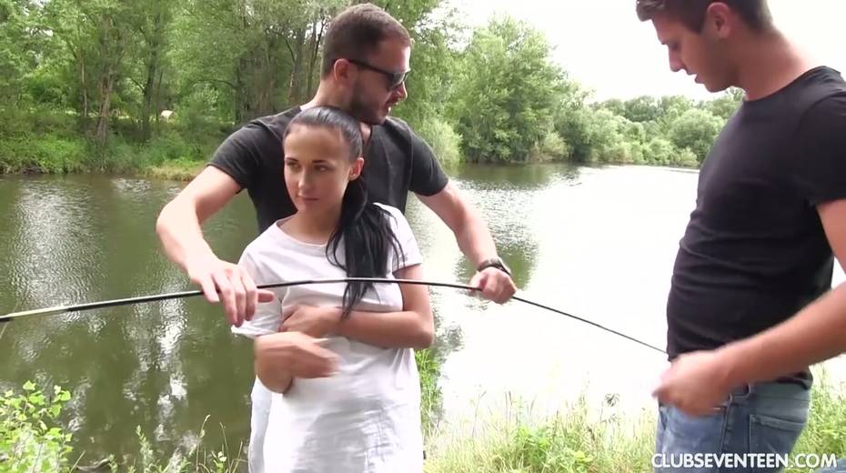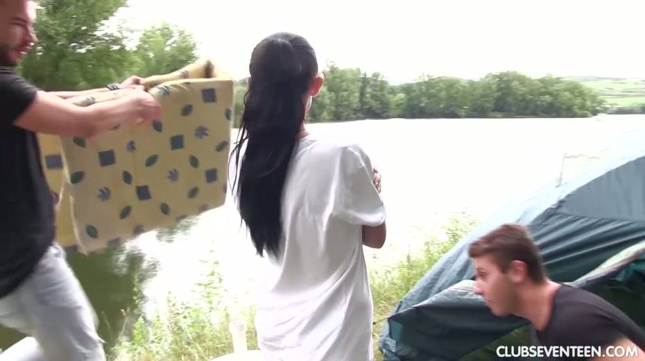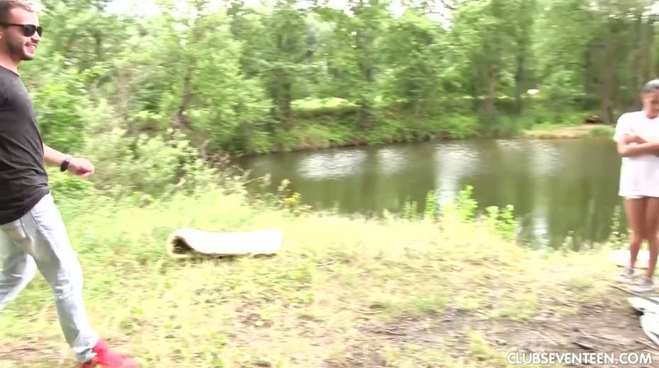 19 yo sweetie Nicole Love enjoys having outdoor threesome sex with two guys
