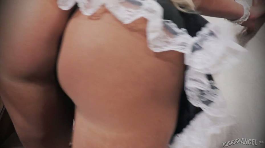 German maid in sexy uniform Nina Elle polishes dick with her mouth and crazy anal hole