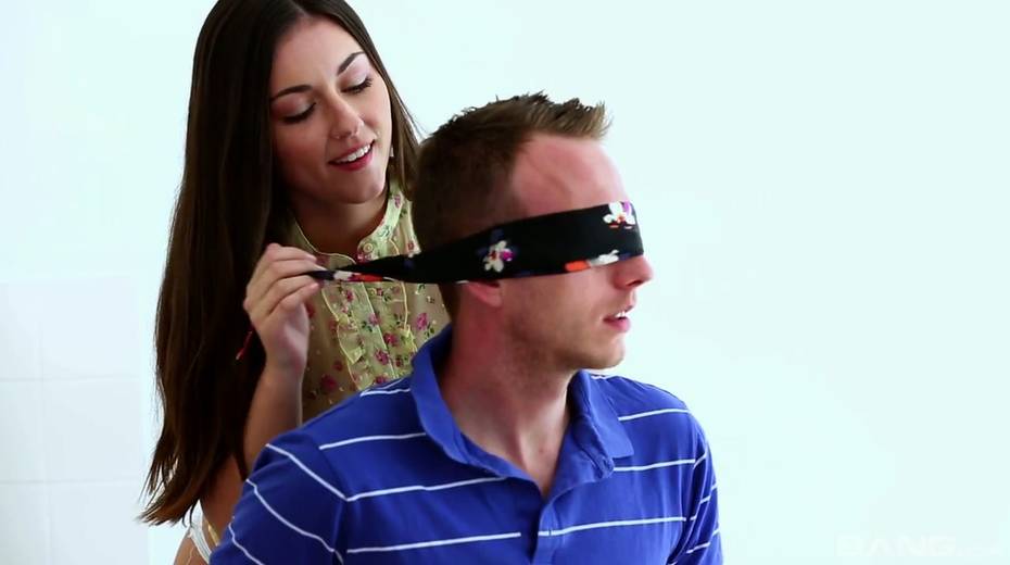 Alluring young girlfriend gives am erotic massage to her blind folded boyfriend