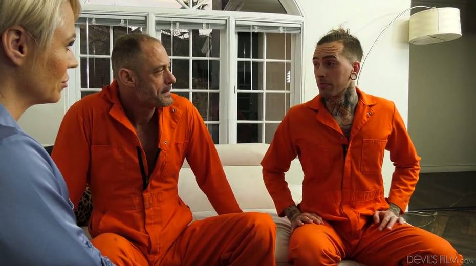 Two tattooed bisexual dudes fuck each other and nasty blonde Helena Locke