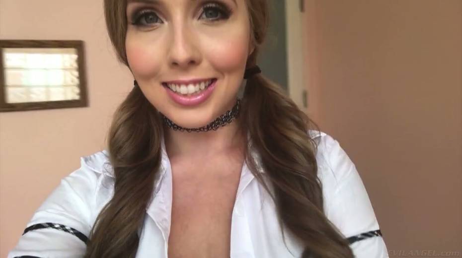 Jaw dropping chick in kilt skirt Lena Paul sucks a dick and gets her anus stretched