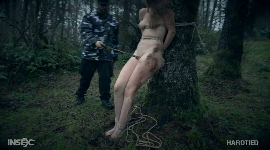 Kinky dude fucks pretty hot tied up girlfriend Ashley Lane in the forest