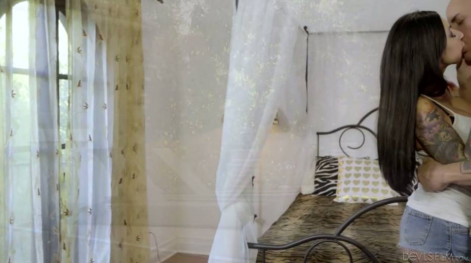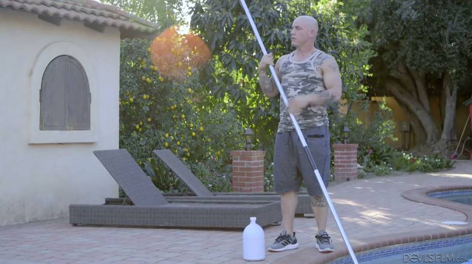 Tattooed whore wife Lily Lane is cheating on her husband with bald headed pool boy
