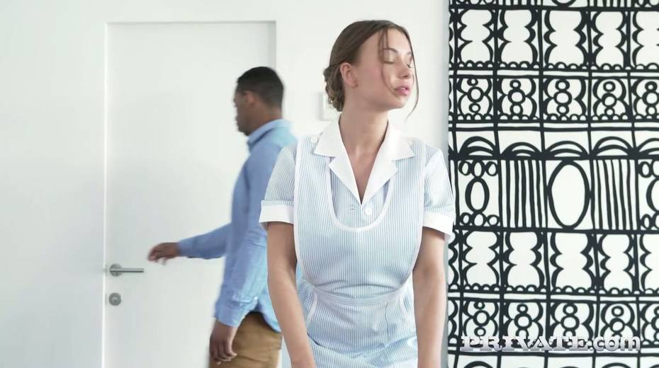 Sexy maid in white stockings Taylor Sands gets double penetrated