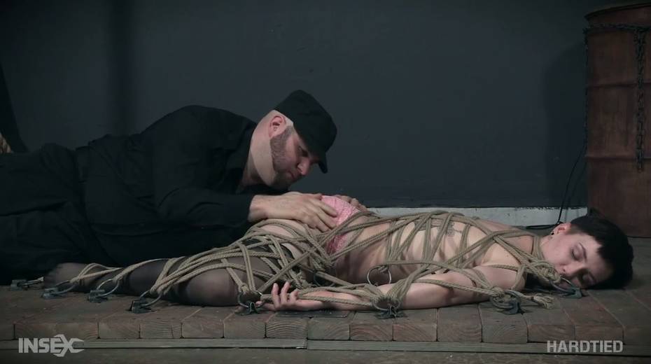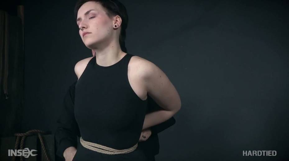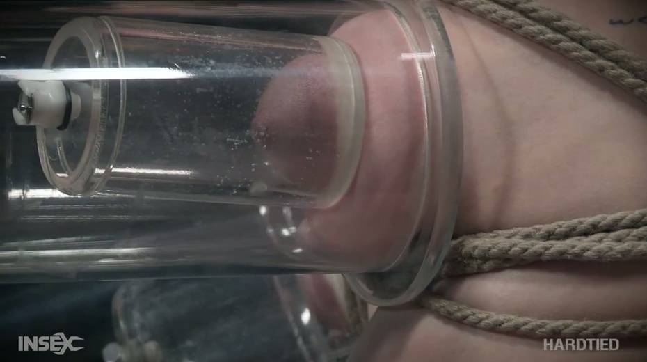 Bondage babe Kitty Dorian is fucked with a long stick with dildo tip