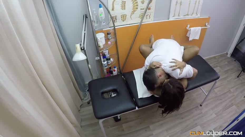 Tanned Latin client Sheyla Gomez gets her pussy rammed right on the massage table