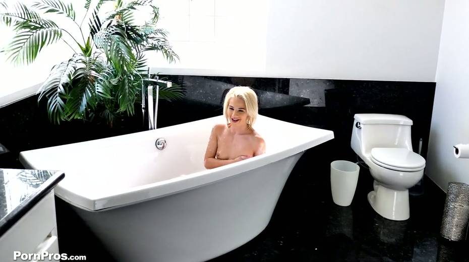 Petite blonde Bella Rose is taking a bath before a passionate sex with her lover