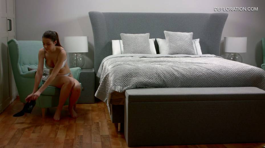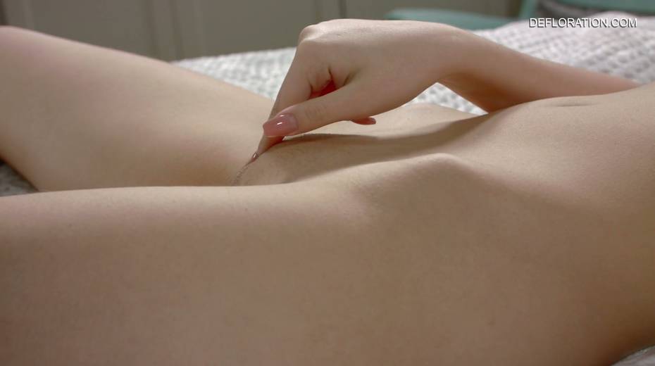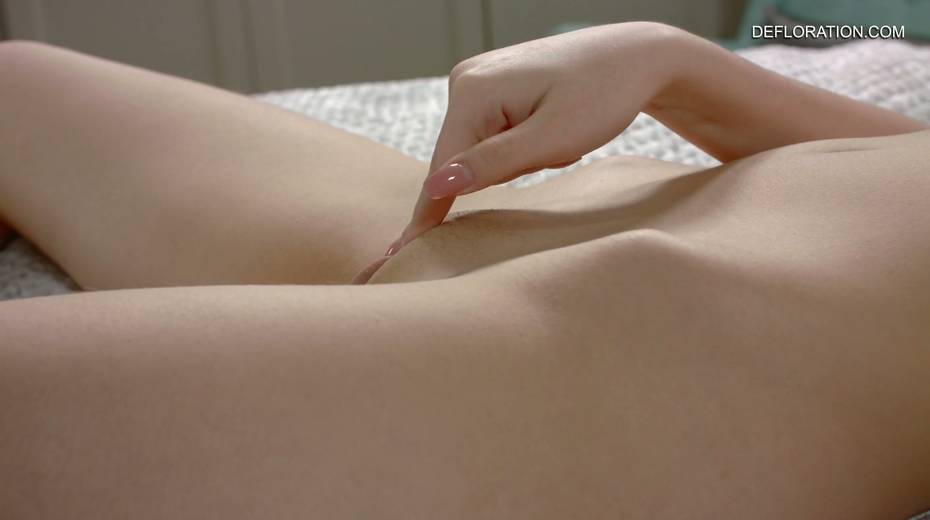 Sweet looking teen Shura Tambova is masturbating her alluring untouched pussy