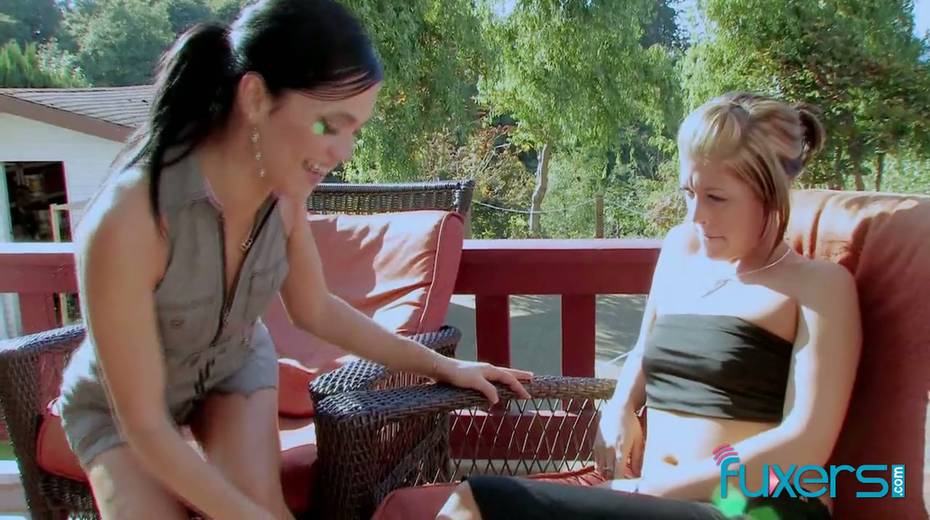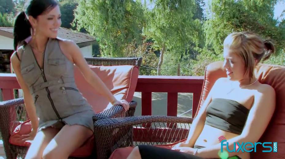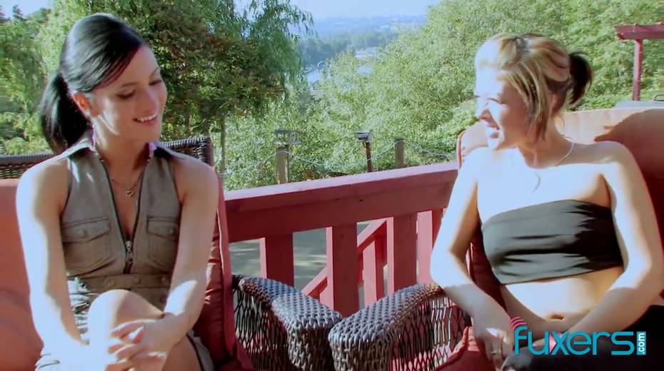 Slutty brunette puts on strapon and fucks naughty nextdoor lesbian