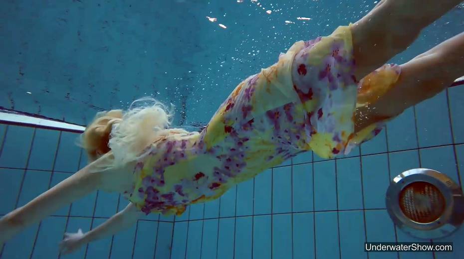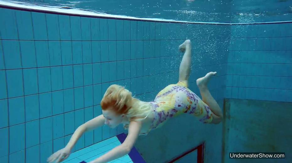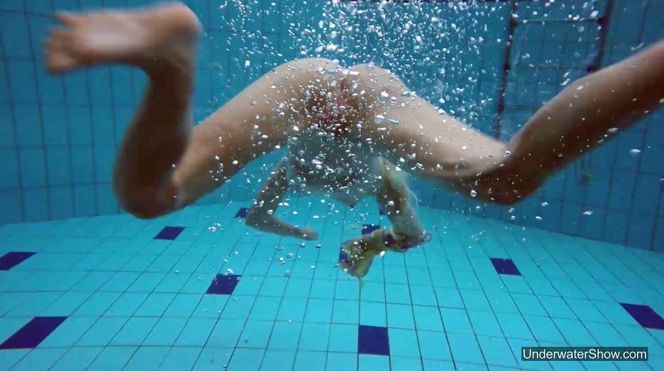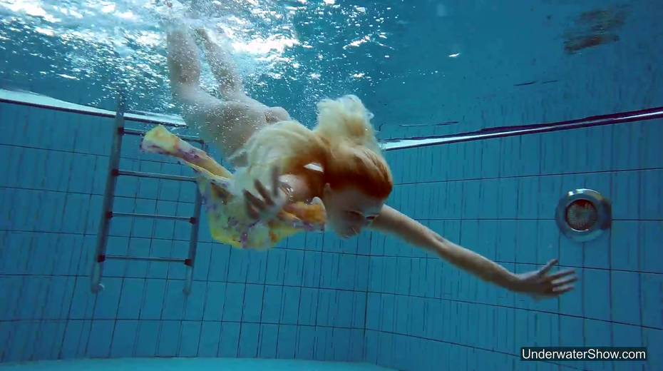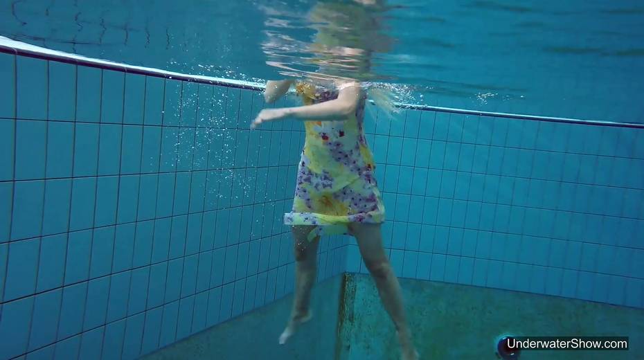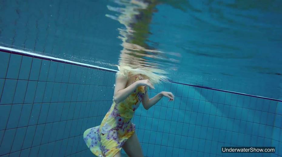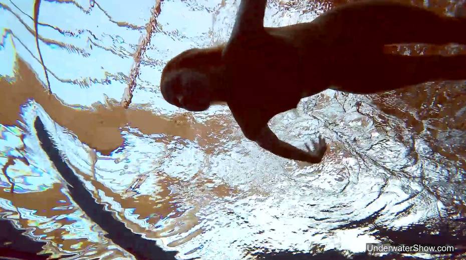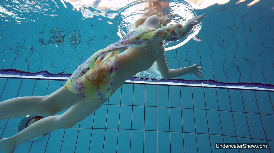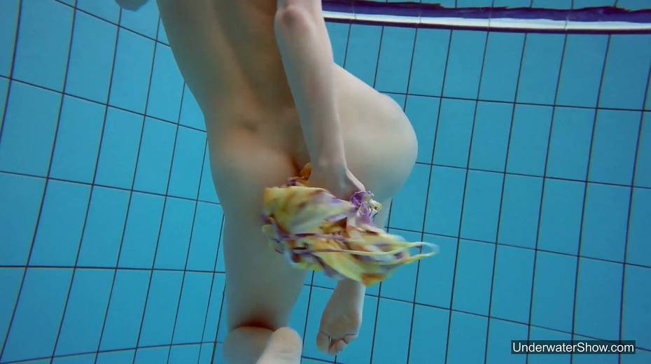Attractive swimmer Milana Voda is stripping under the water
