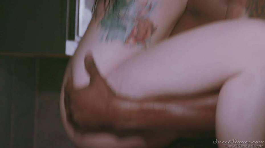 Yummy tattooed babe Rachael Madori takes a meaty black penis in her wet punani