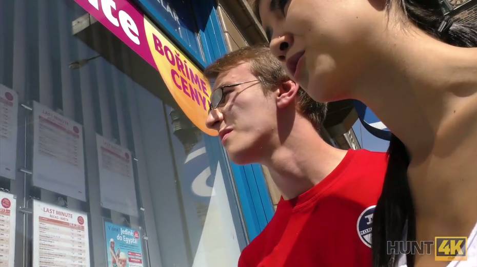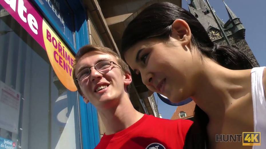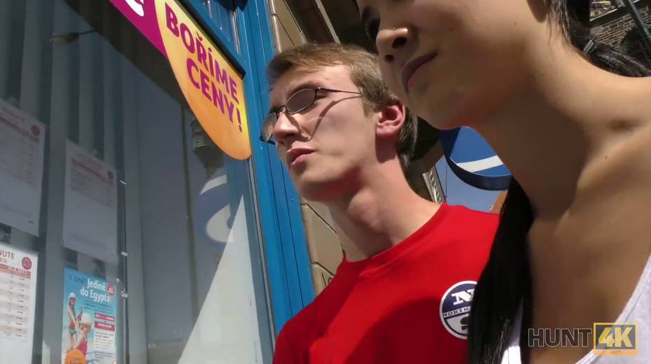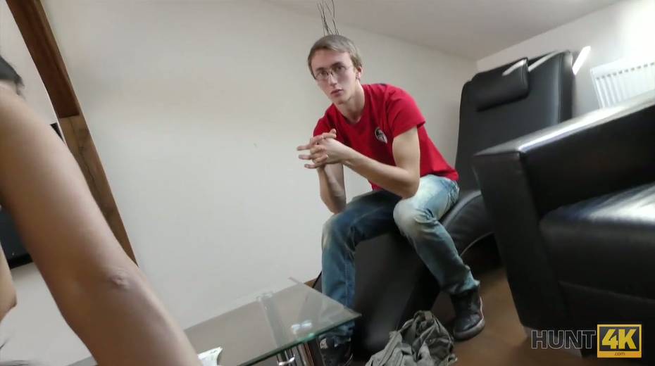 Slutty brunette gets fucked in the presence of her nerd boyfriend