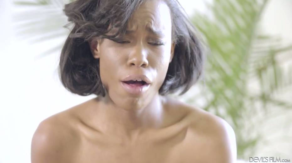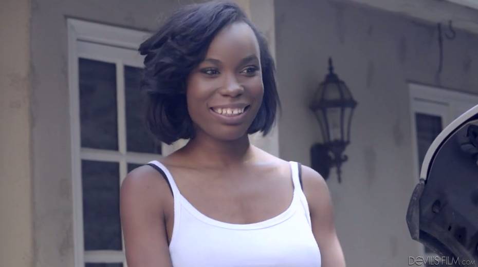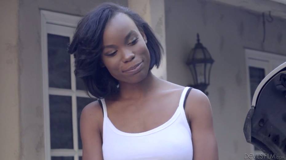 Cute ebony nextdoor chick Ivy Logan gets intimate with one white guy