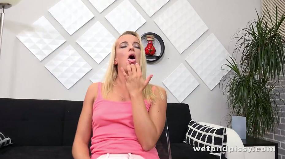 Pee fetish babe Victoria Pure is toying her wet and whorish pussy