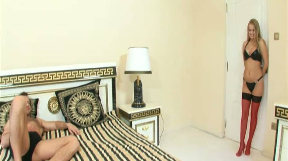 Delicious hottie Dora Venter puts on stockings before crazy sex with her lover