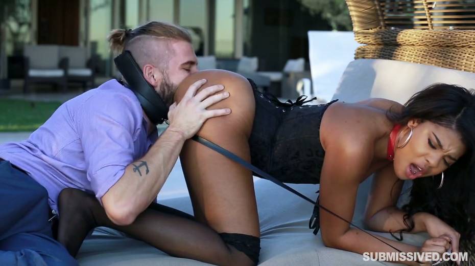 Gorgeous seductress Zoey Reyes is riding her submissive on a leash