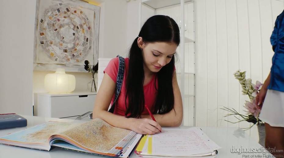 Hot blond milf Kathy Anderson is licking pussy of charming step daughter
