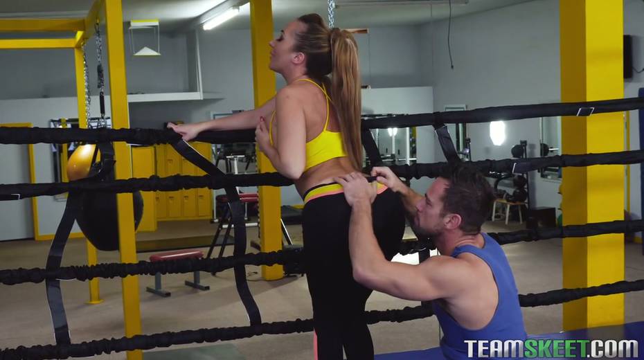 Sport babe Richelle Ryan gets intimate with her boxing coach right in the ring