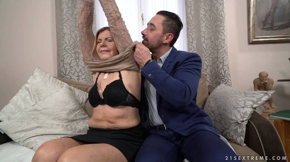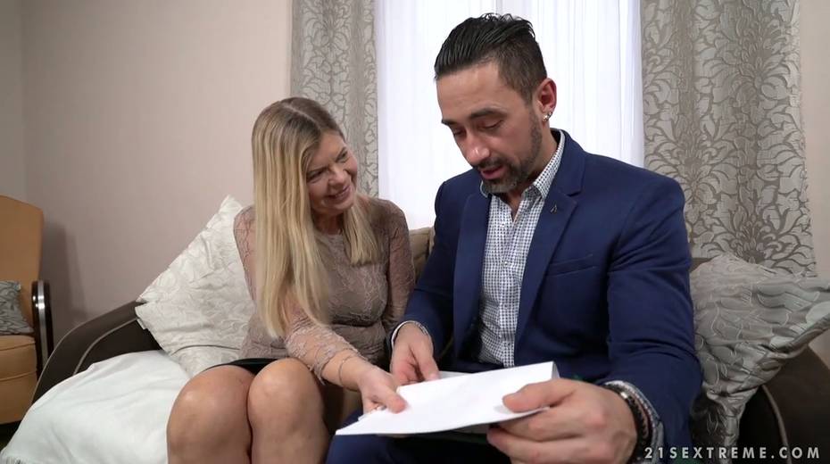 Old bitch Samantha gets intimate with one young dude living nextdoor