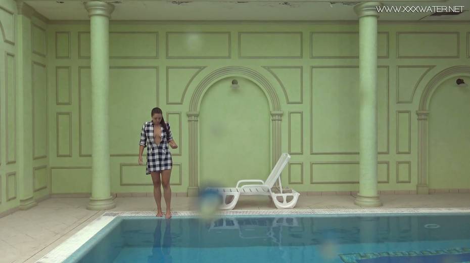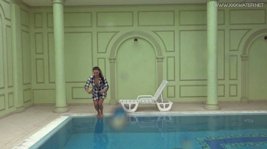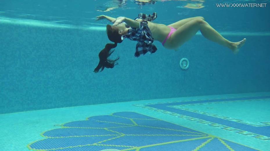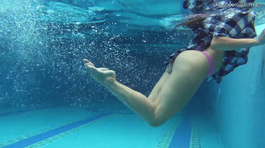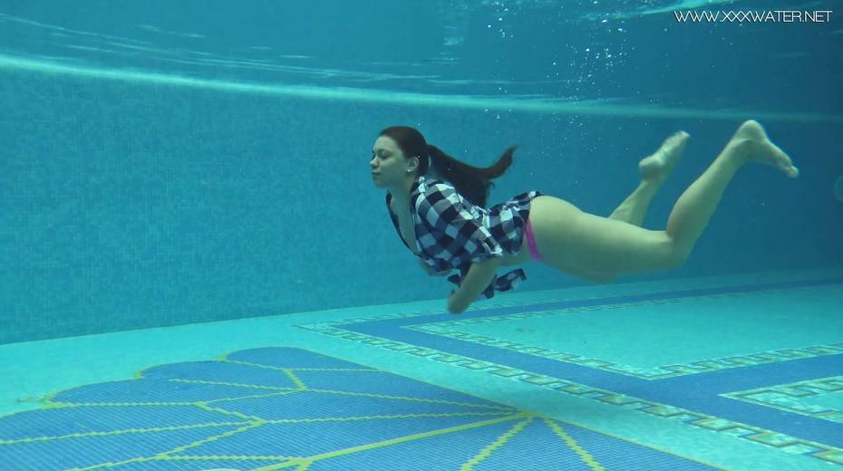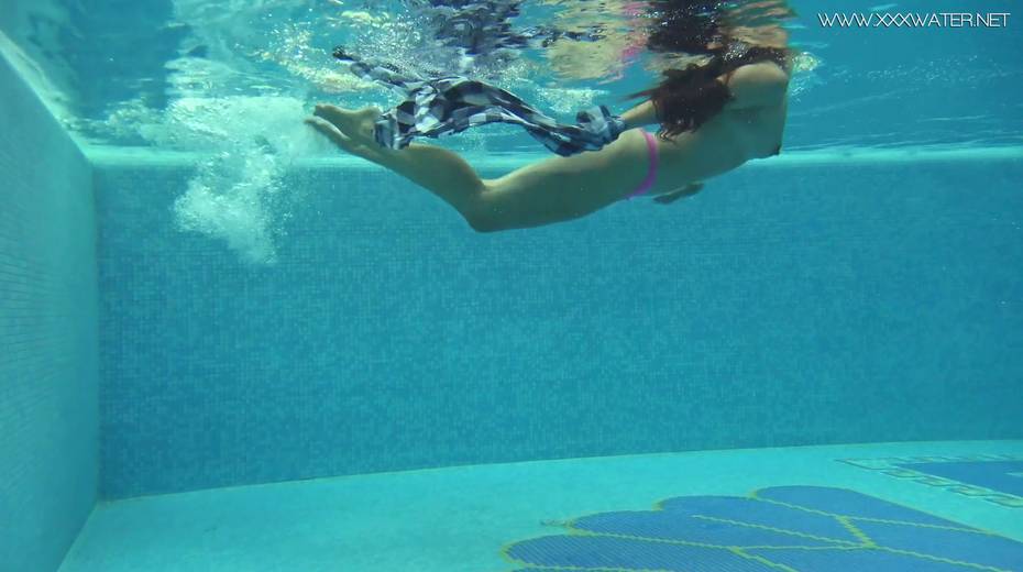 Slender swimmer with juice ass Sazan Chehards gets naked under the water