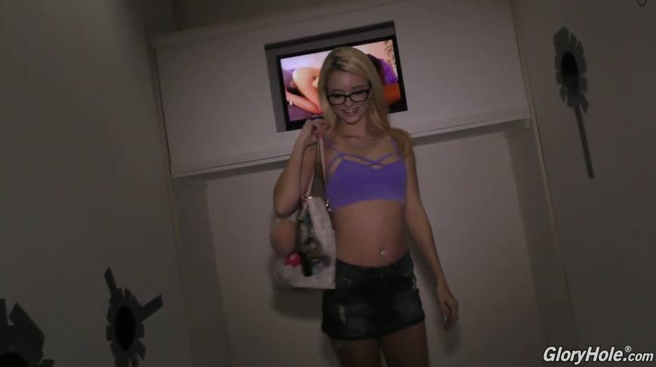 Kinky blonde Riley Star is visiting her favorite glory hole room