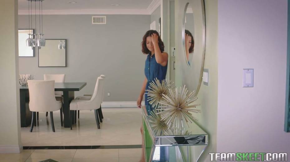Sweet heart Izzy Bell caught her step daddy with one slutty woman and joined them