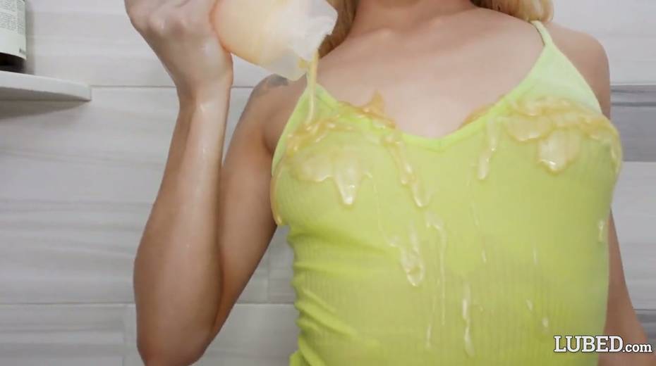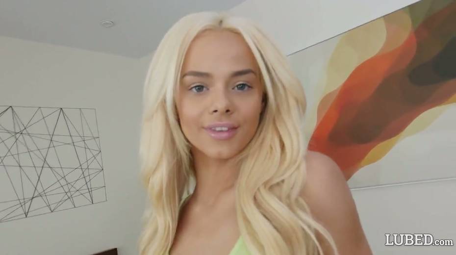 Oiled up blondie Elsa Jean gets her anus rimmed and takes a dick in her tight pussy