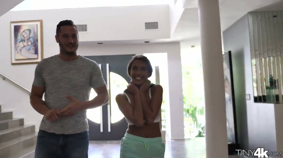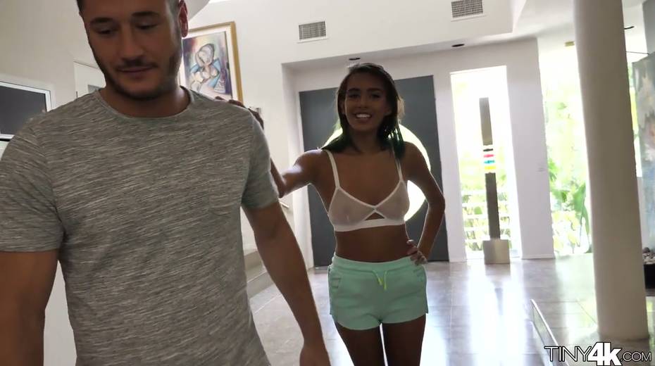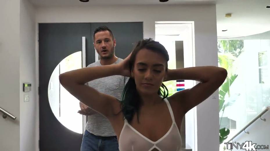 Tanned slender babe Janice Griffith licks balls like a greedy for semen bitch