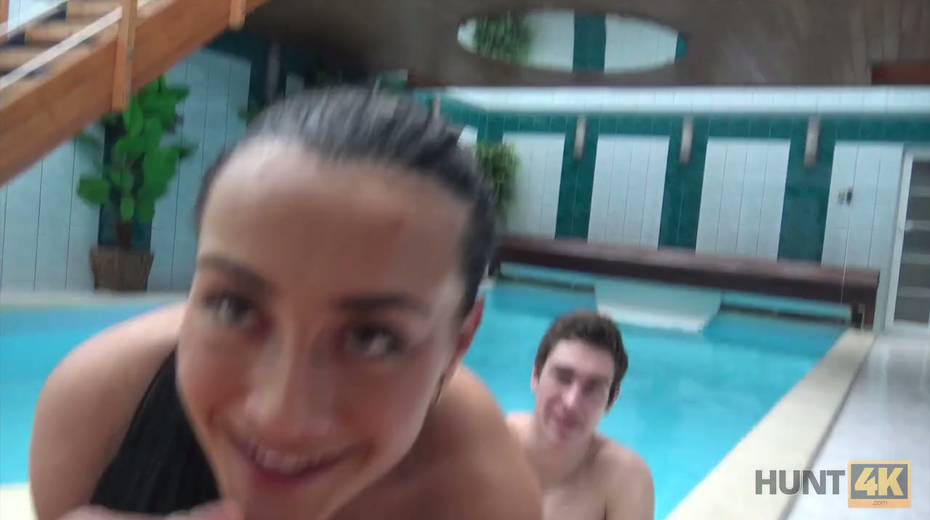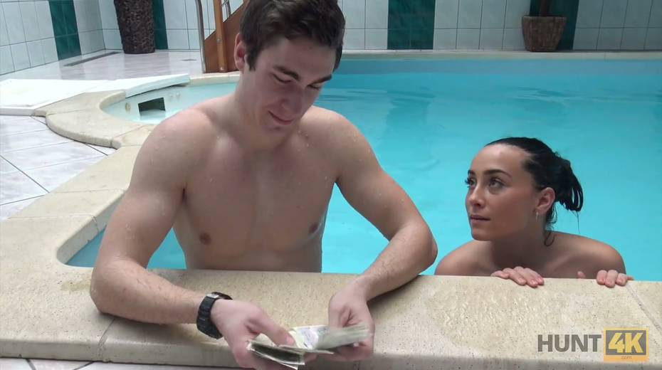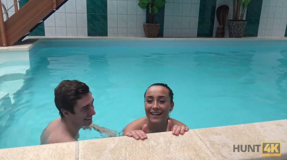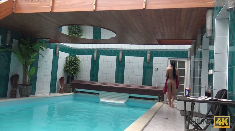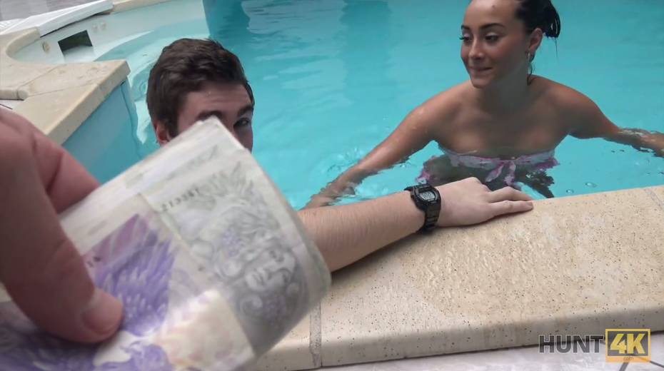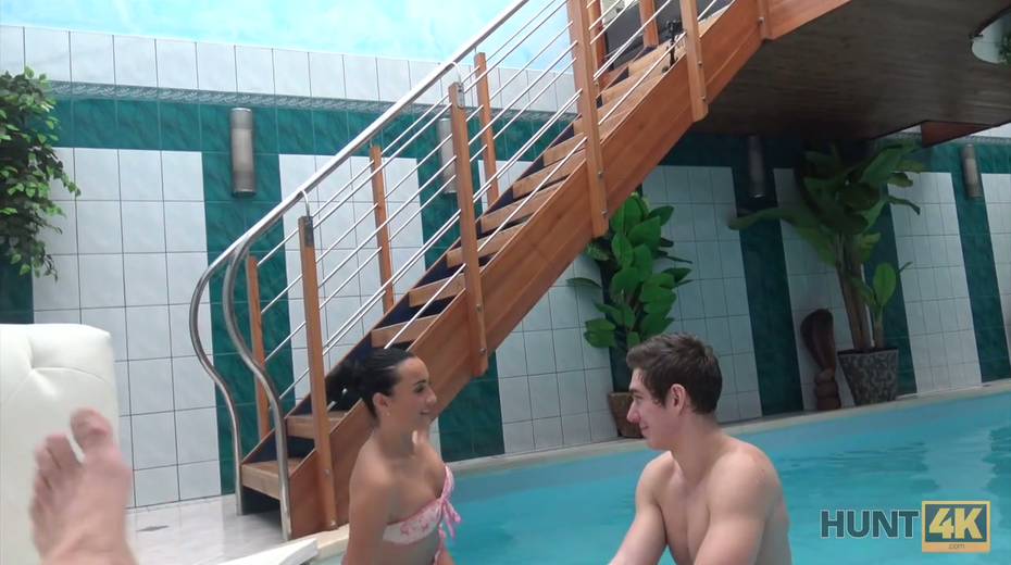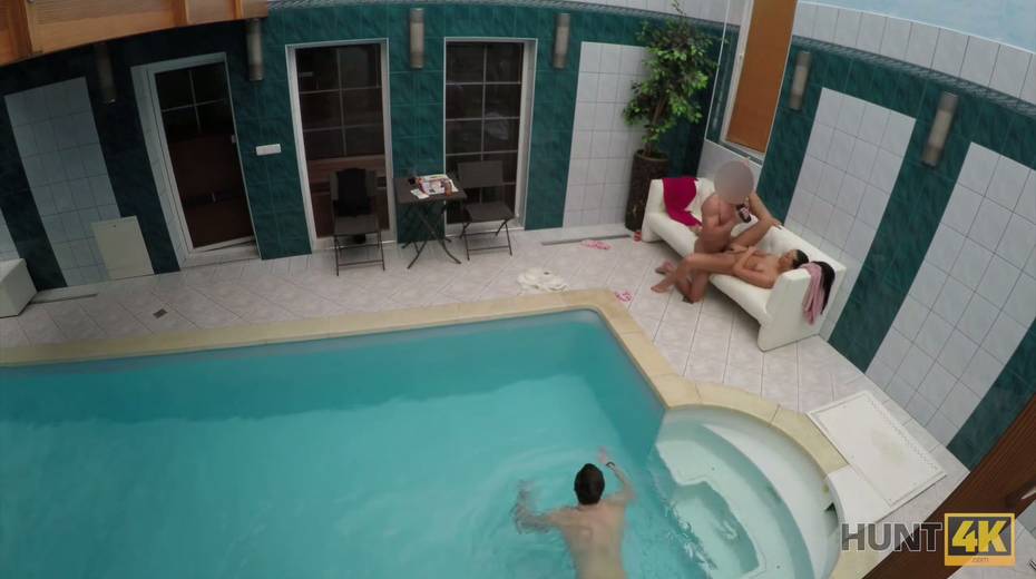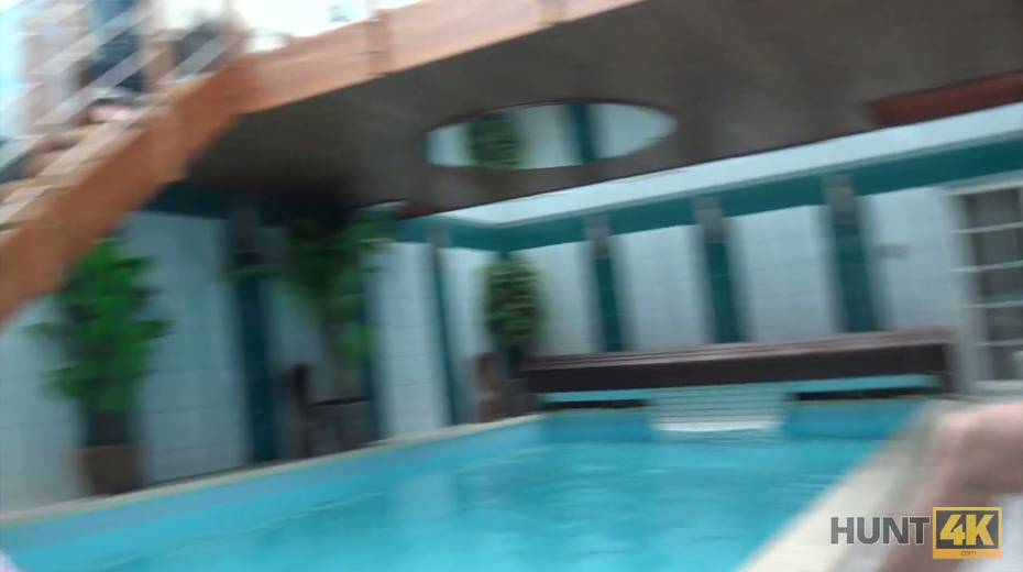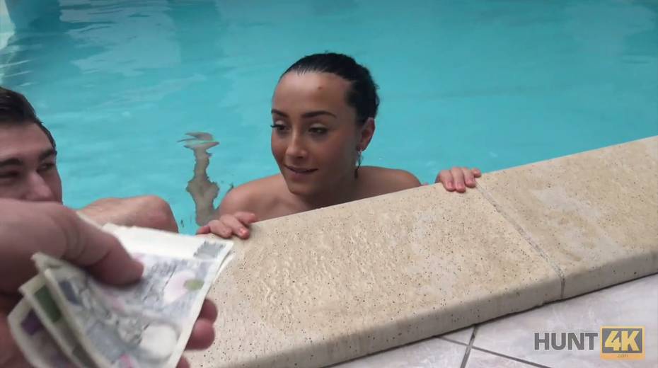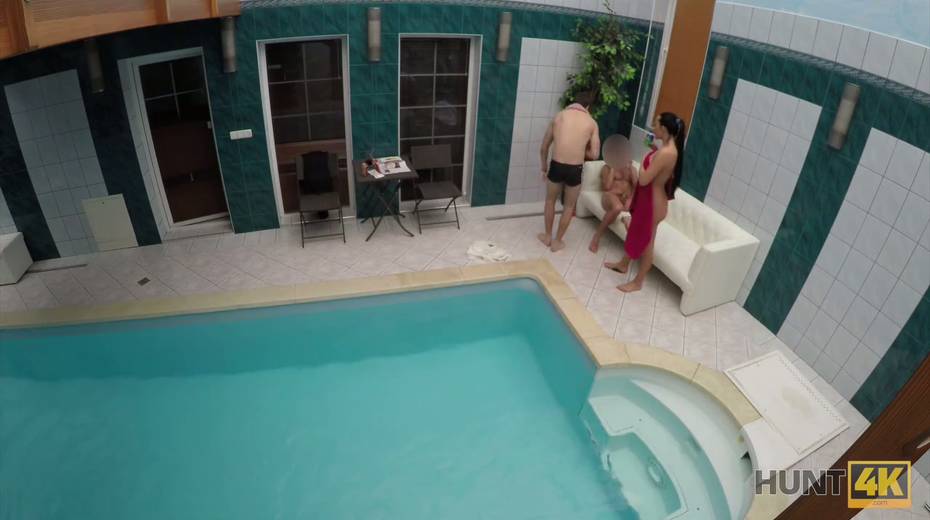 Two horny dudes fuck picked up chick by the poolside