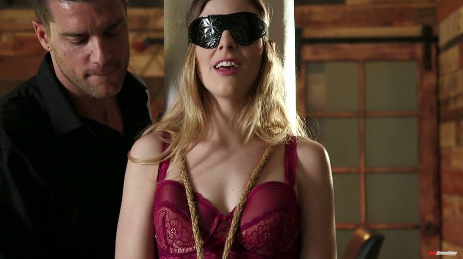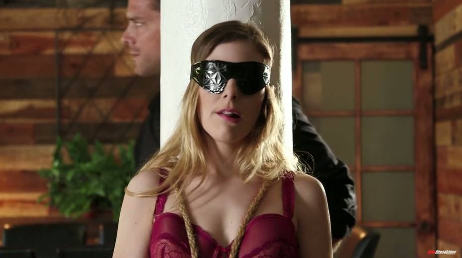 Blind folded babe Kendra Lynn gives a blowjob and gets her pussy rammed