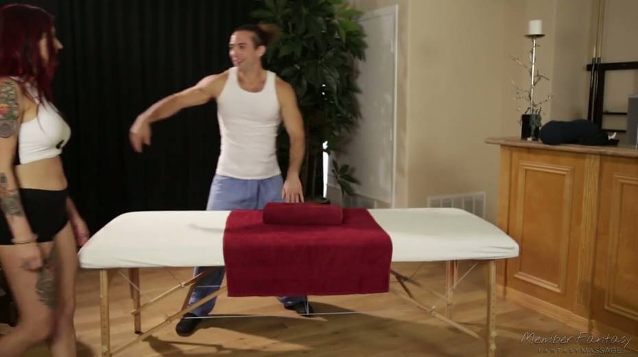 Tattooed red haired babe Tana Lea is fucked right on the massage table