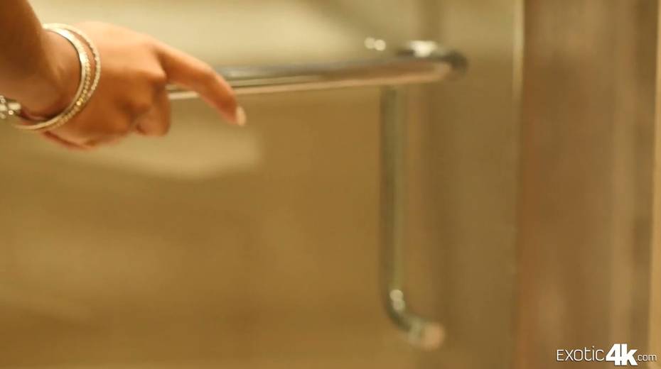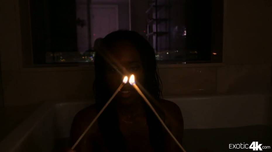 Slender ebony chick Ashley Pink goes wild on a hard white penis