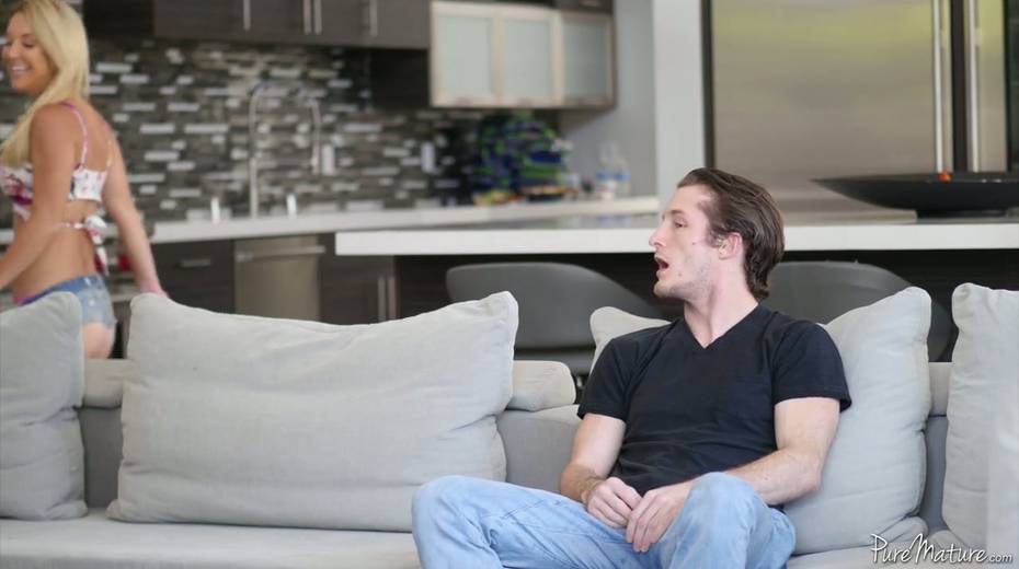 Captivating blondie in jeans shorts Laura Bentley seduces her boyfriend