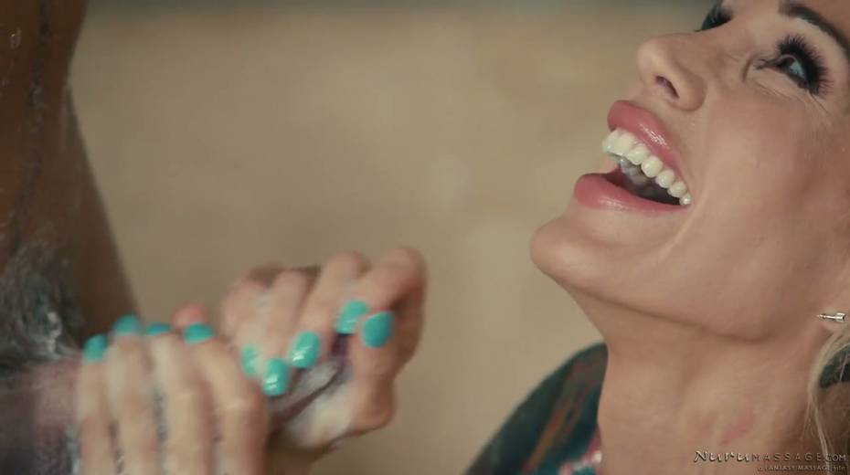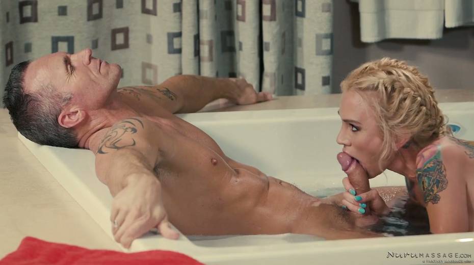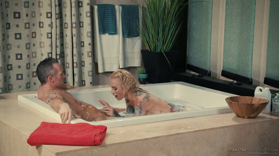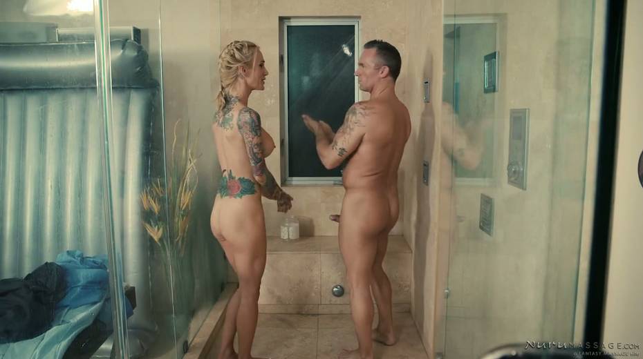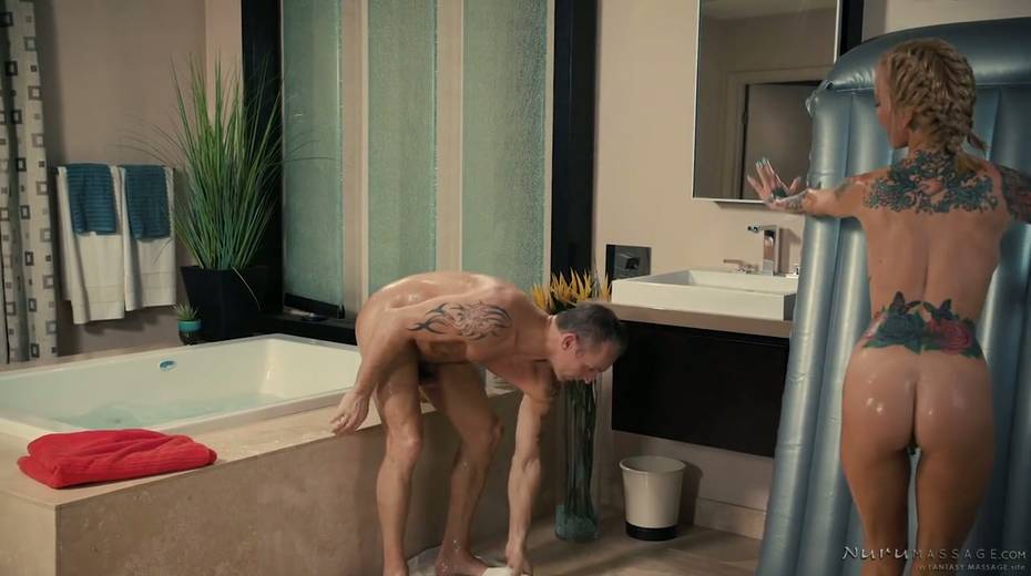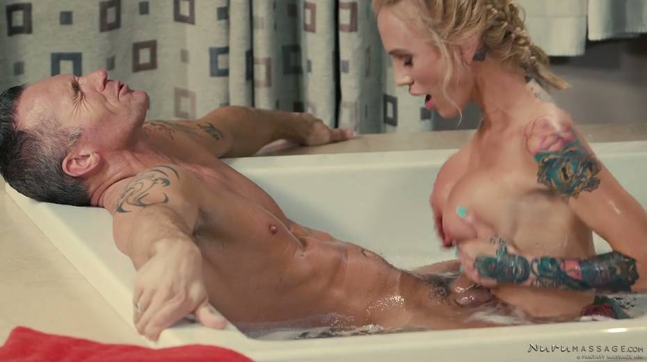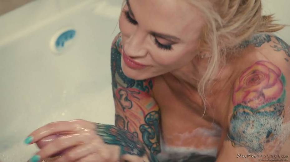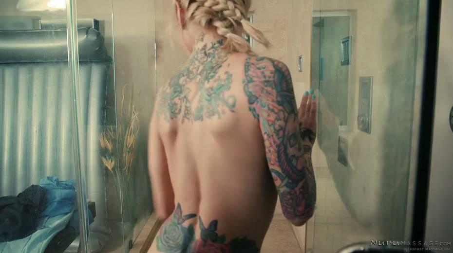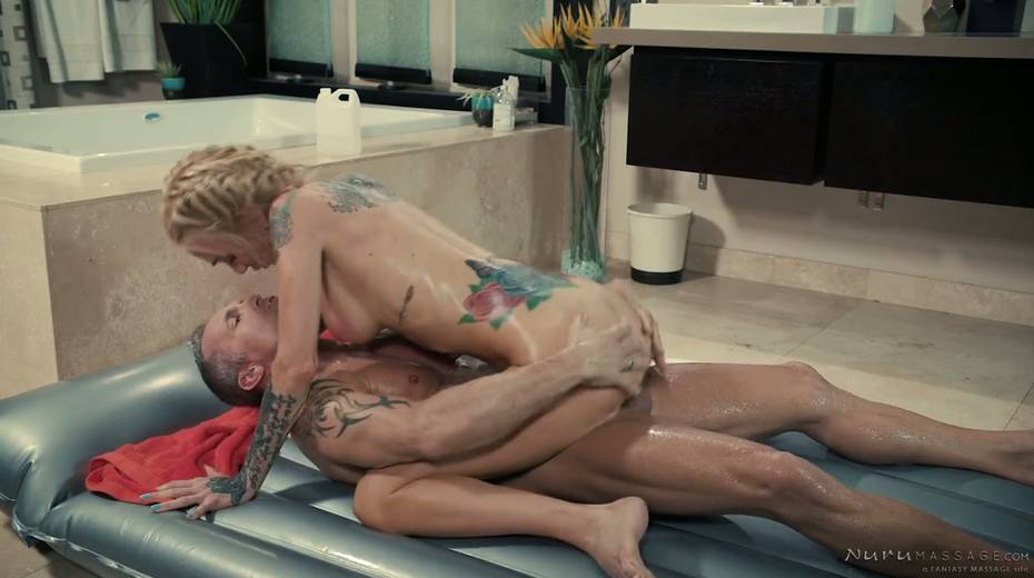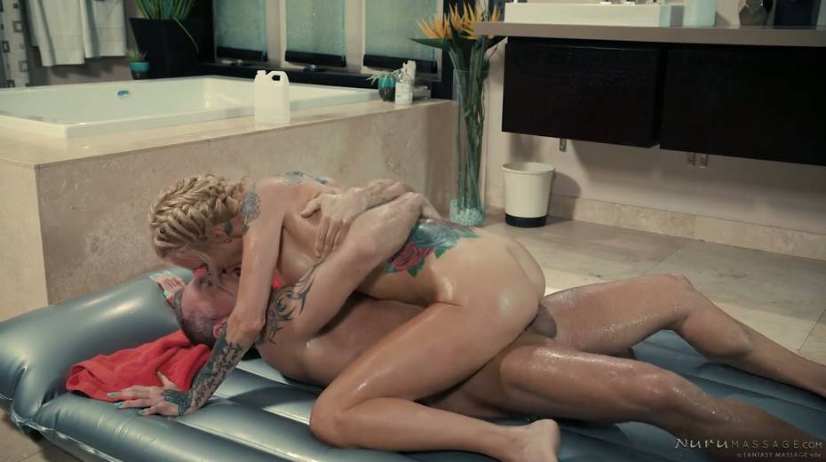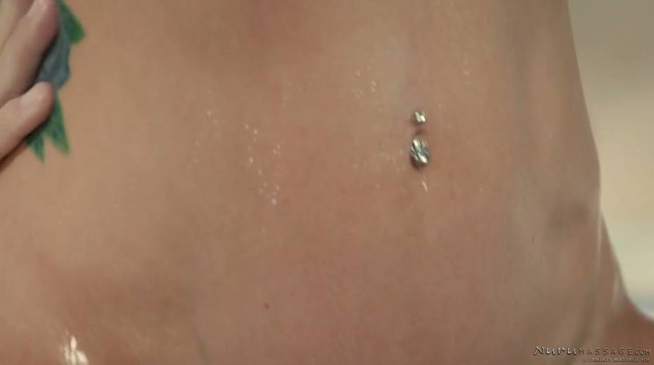 Captivating tattooed bitch with pierced clit Sarah Jessie gives the best nuru massage