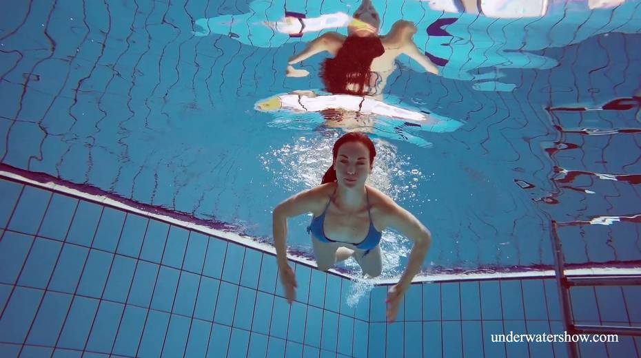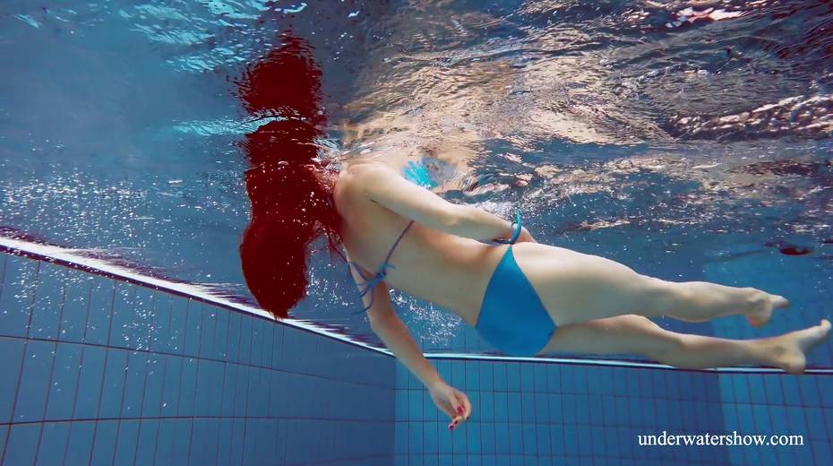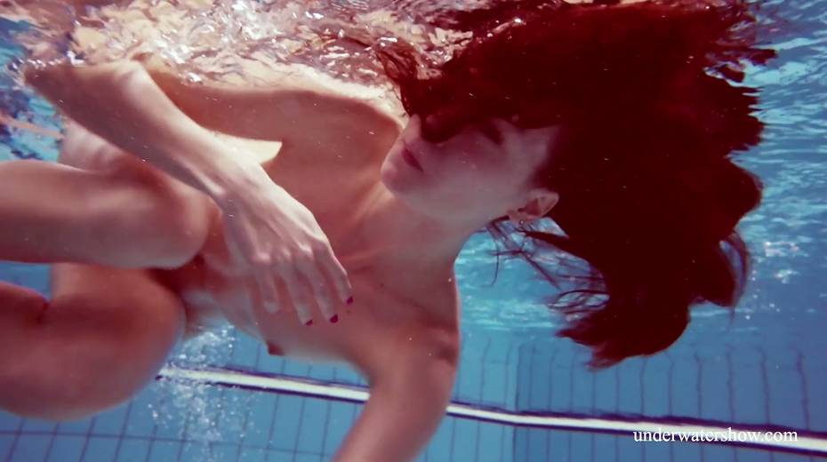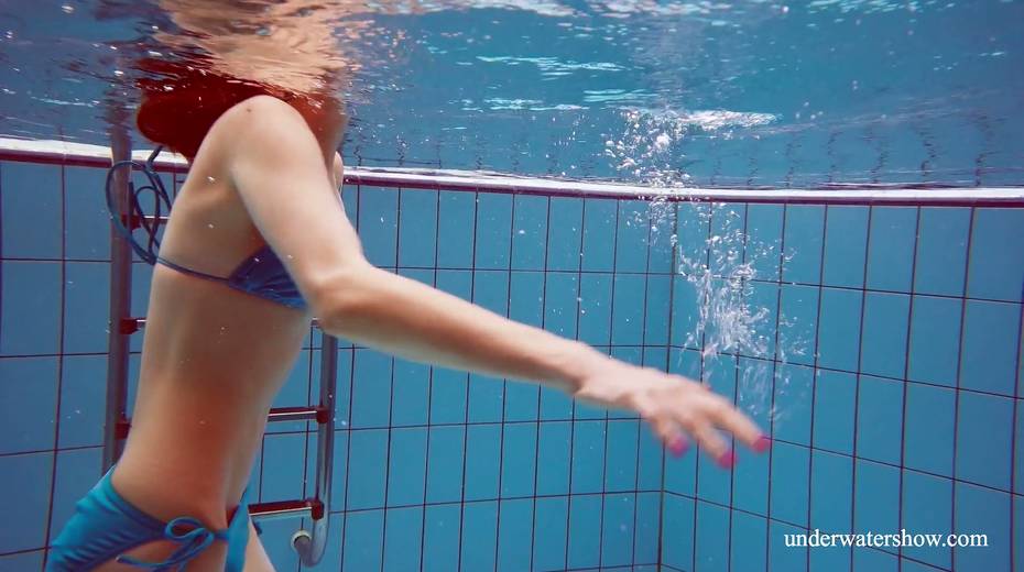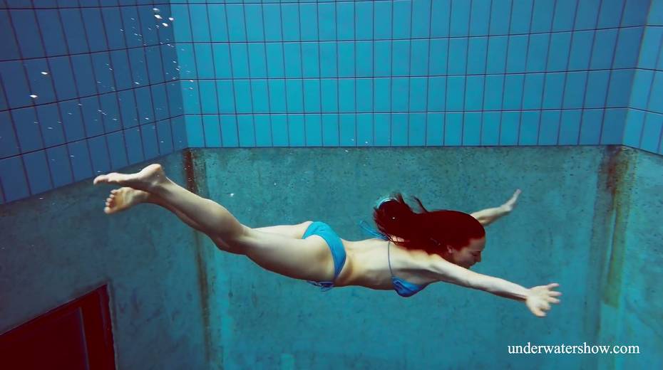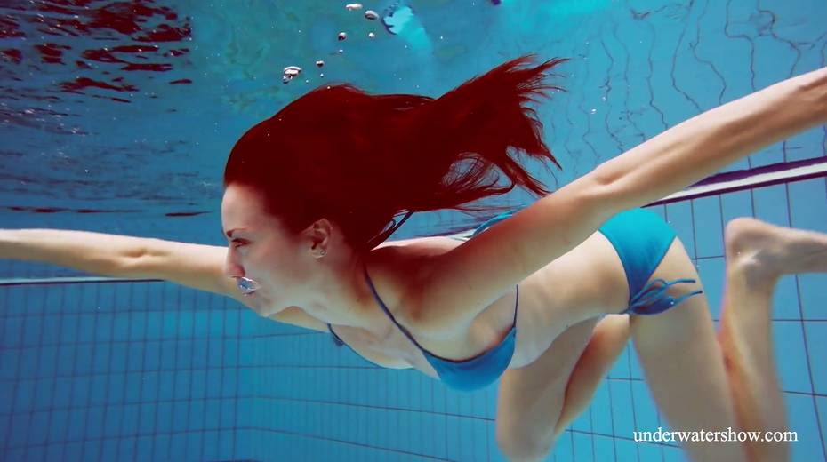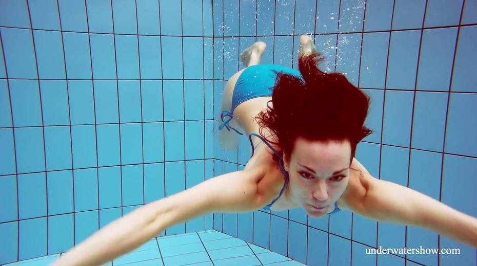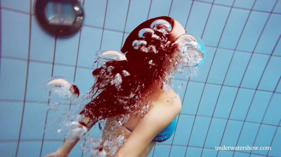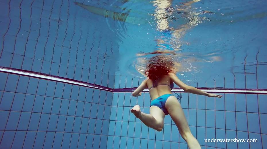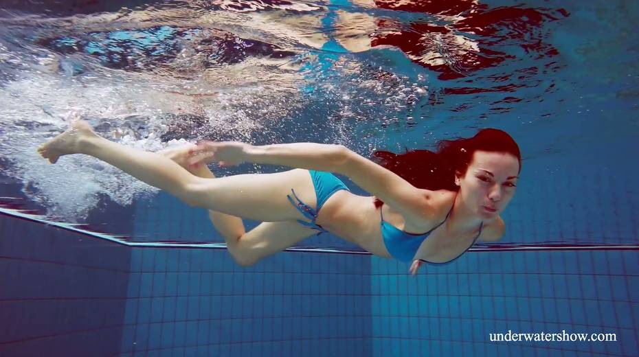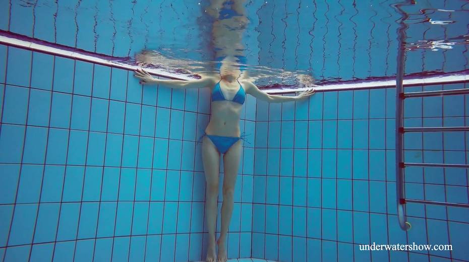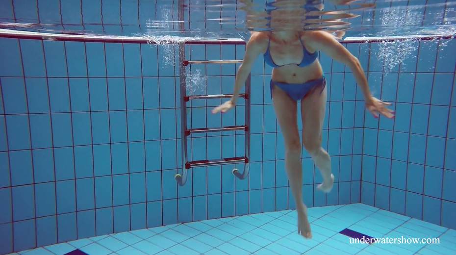 Sexy swimmer Martina takes off her bikini under the water